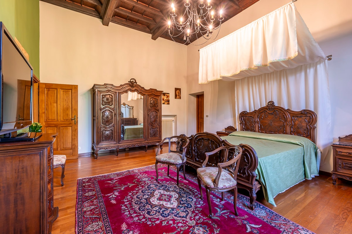 La magia del castello in una stanza grande e colorata che ti accoglie con un letto matrimoniale a baldacchino e mobili d'epoca. Affacciata a sud gode di luce speciale durante le ore del giorno. Un grande parco è a tua disposizione per passeggiate nel verde. L'ingresso è dalla sala relax e potrai quindi affacciarti per prendere un libro dalla grande biblioteca o fare una partita a biliardo in allegria. Dal ballatoio raggiungerai la sala colazione per un super inizio di giornata!