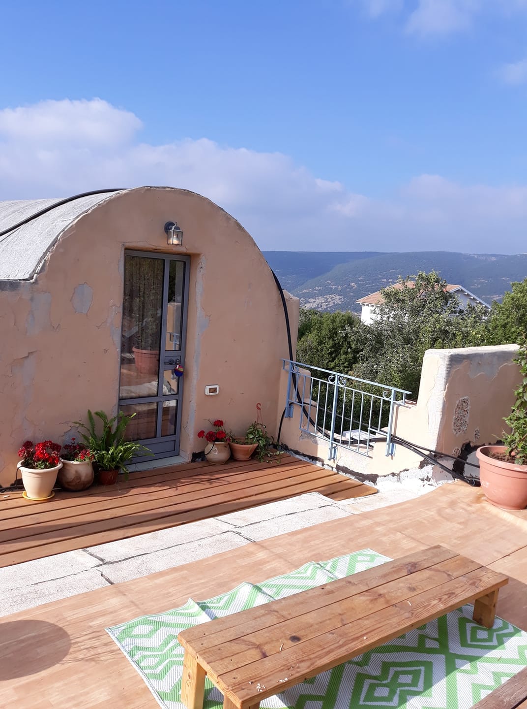 A Galilean cabin nestled in the magical village of Klil ; for couples or solo travelers who wish to slow down, recharge, and make space for beauty ♡ The cabin is intimate and embracing, filled with natural light and designed with quiet simplicity. Set in the heart of the village, it overlooks its unique landscape and is surrounded by a wild, blooming garden with a romantic plunge pool at its center.