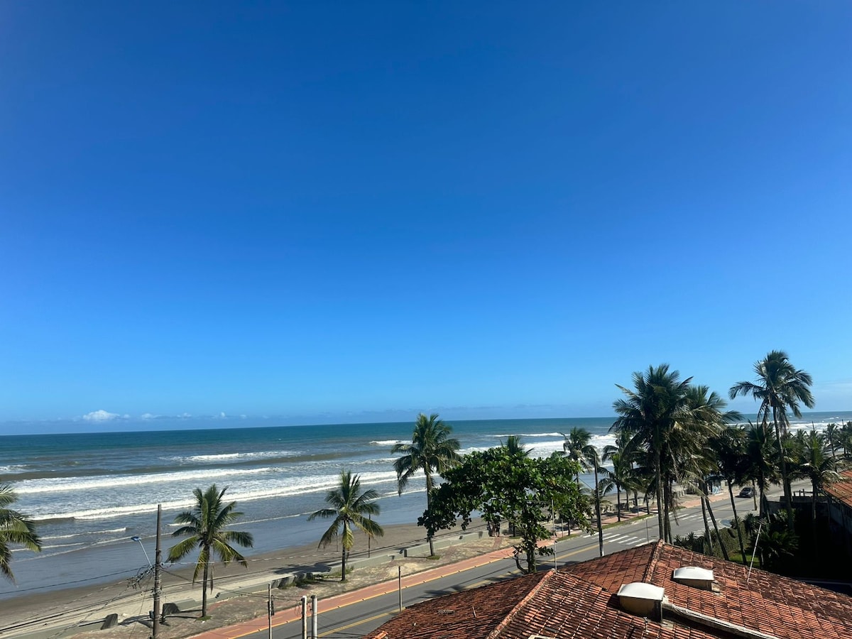 Vista frente mar total maravilhosa em um lindo apartamento decorado frente mar total 2 dorms, (1 suíte). Ar condicionado. O mais belo e encantador nascer no sol, juntamente com o delicioso barulho do mar! Você irá sentir uma paz e ficará encantado com essa experiência! Além disso tenha o privilégio de presenciar o pôr do sol frente mar numa sala de estar e jantar linda com ar condicionado, móveis de altíssima qualidade, tvs smart, cafeteira Nespresso, cozinha completa com fogão indução.