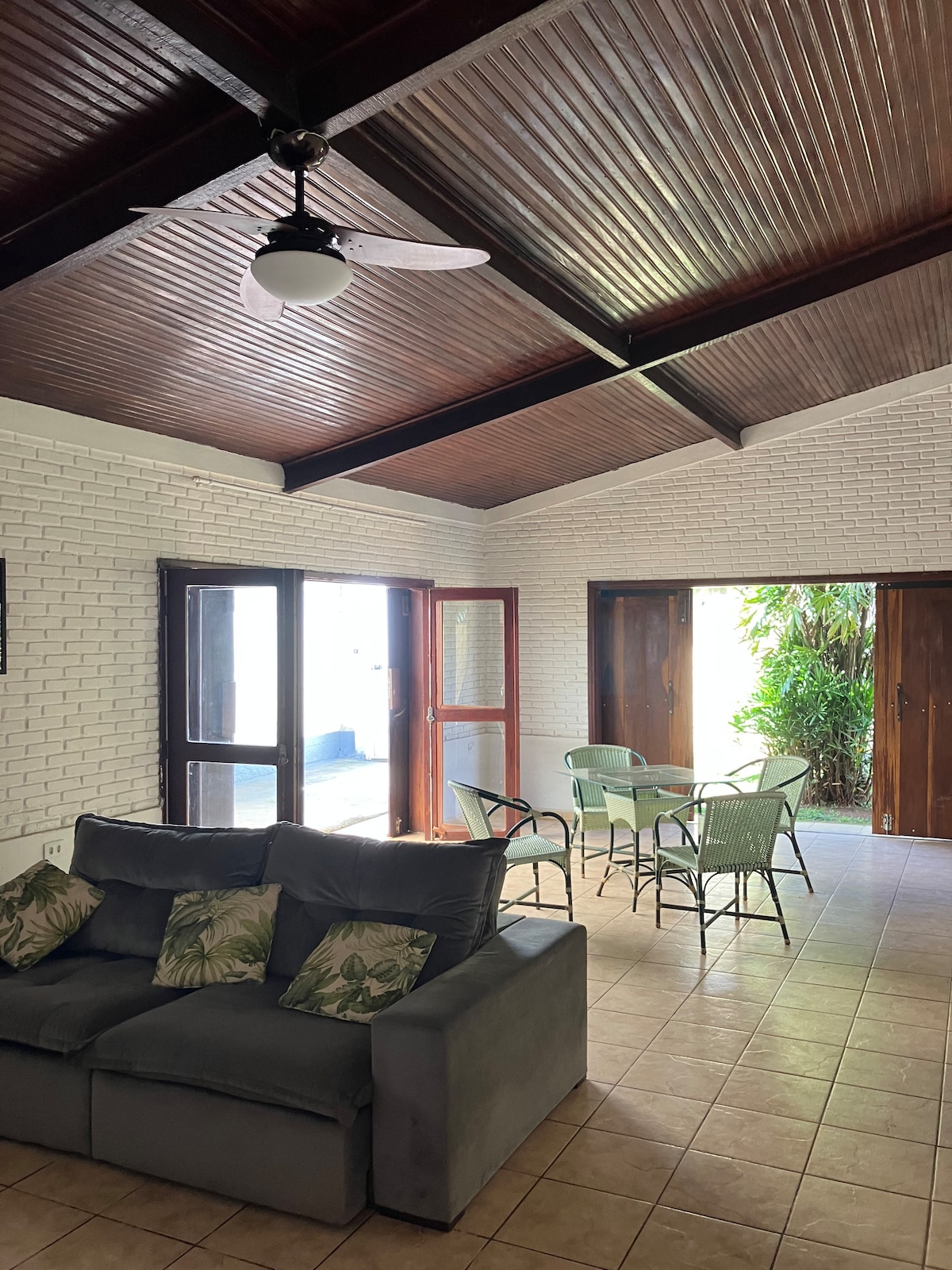 Oubliez vos soucis dans ce logement spacieux et serein, à l aire rustique, confortable et pratique . À 5 minutes à pied de la plage de Guaiúba, maison spacieuse avec quatre suites, indépendantes , longé par une terrasse couverte qui rejoint un ample salon. Un endroit convivial pour être entre copains ou famille. La plage de Guaiúba se situe entre deux belles vallées avec une mer calme, idéal pour les enfants. À quelques kilomètres du centre-ville. Possibilité de late check out.