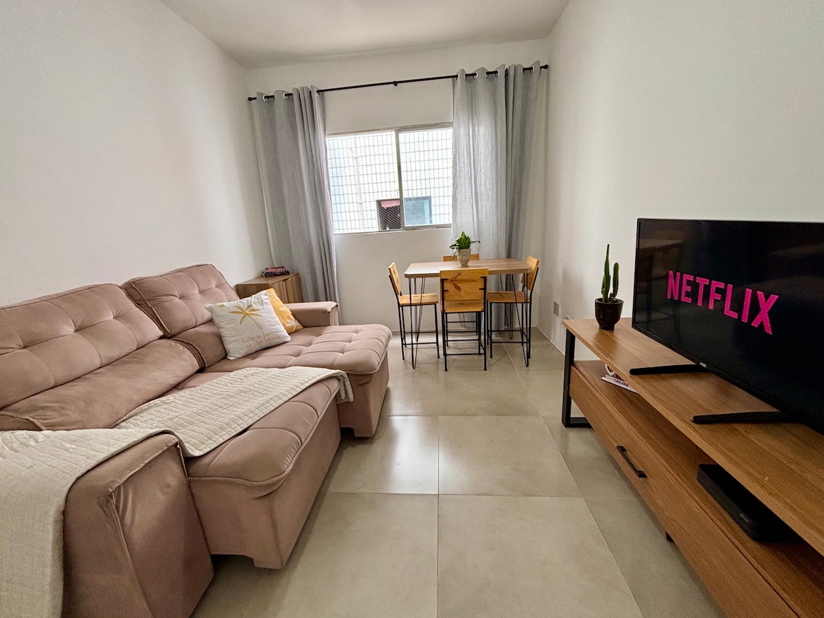 This 55m² apartment is ideal for couples and executives on business trips. It has everything you'd expect from an apartment: practicality and technology. For those coming to spend New Year's Eve in Santos, you can enjoy the festivities without even leaving the building. From the pool area, you can enjoy the sea view, the fireworks, and the city's festive atmosphere without having to deal with traffic, crowds, or a tiring commute after the fireworks.