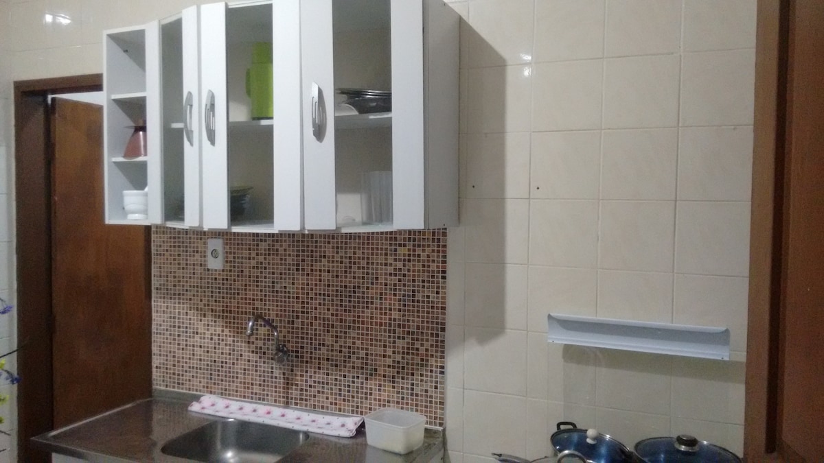 EXCEPCIONALMENTE NO DIA 27/FEV/26 checkin somente após as 17hs - Edícula independente e confortável. Ideal para no máximo 3 pessoas. Quarto com uma cama de casal e colchão de solteiro (em cima de tapete felpudo), internet, ventilador de teto, ar-condicionado e Smart TV. Banheiro (toalhas e roupas de cama). Cozinha com balcão ao ar livre, ótima para Churrasco, temos geladeira, fogão, microondas e demais utensílios. Moramos na casa da frente, eu e minha mãe.