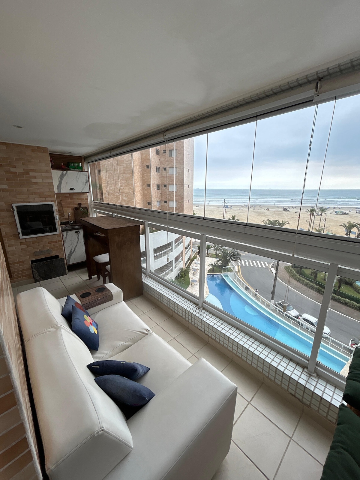 Modern apartment on Aparecida beach. Excellent location, building in front of the beach, close to the bars of channel 5 and the Praiamar shopping mall. On a high floor, with partial sea view, on 3 balconies. Well equipped kitchen (gas grill, microwave, electric oven, cooktop, brewery, wine cellar, coffee makers and dishwasher). Social bathroom. Suite with queen bed, whirlpool and bathroom. Bedroom with 2 king single beds. Mattress/sofa available. Laundry with machine. Air-conditioned.