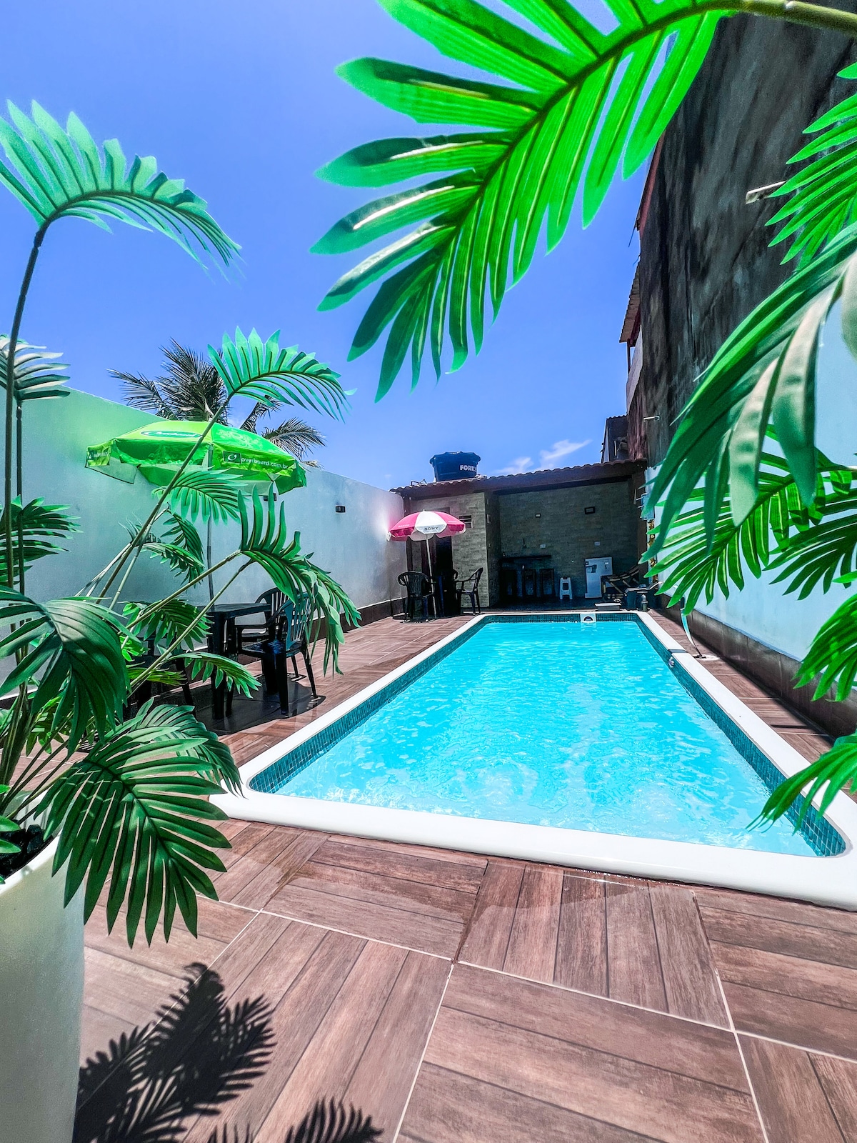 "CASA DE PRAIA" Um bom espaço interno, área externa ampla com redes, PISCINA linda, área coberta nos fundos com bancos e cadeiras, mesa de BILHAR, PING PONG, WC externo, CHURRASQUEIRA, FOGÃO a lenha, TV com NETFLIX e WI-FI tudo disponível para o uso, um ambiente agradável com jardinagem e plantas que alegram o ambiente, garagem para 05 veículos tudo bem pensado, escorregador e balanços kids, MESA de DAMA e outros brinquedos para a criançada, estamos te aguardando!