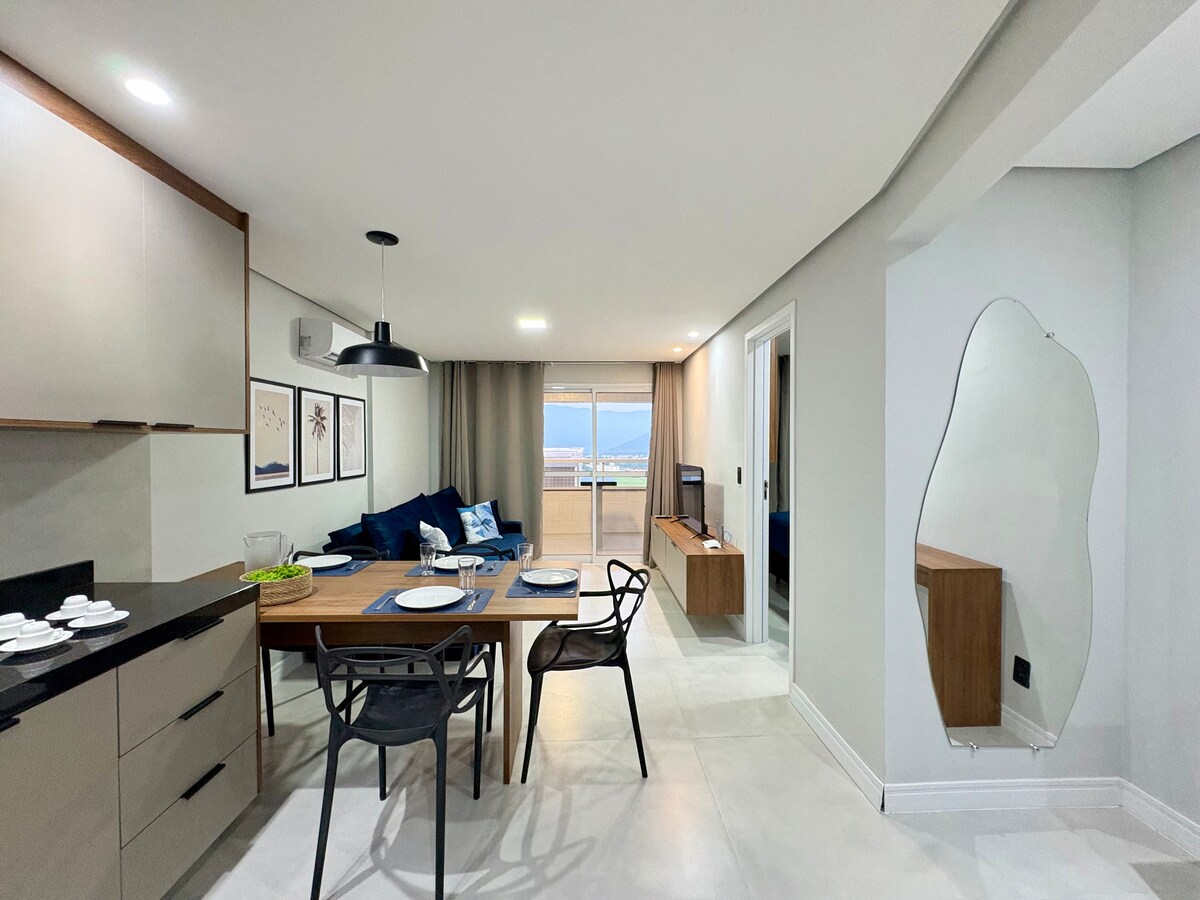 Desfrute dias inesquecíveis neste luxuoso apartamento decorado frente mar em Mongaguá. Acomoda confortavelmente 4 pessoas em 2 dorms, sendo uma suíte; e sala com 2 ambientes c/ ar condic., cozinha americana completa, varanda gourmet e uma vista magnífica do mar. Utilize a Piscina e lazer do condomínio. 1 vaga de garagem, Wi-Fi. Self checkin, tv smart, roupas de cama e banho impecáveis disponíveis. Mongaguá está com a orla revitalizada, ampla gastronomia e pontos turísticos.