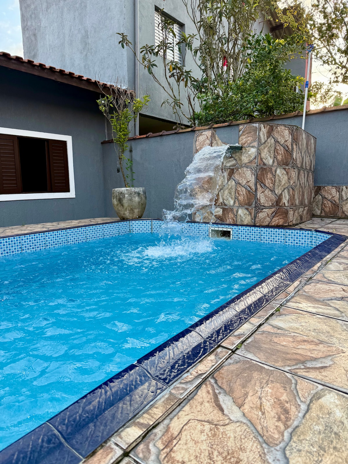 ☀️🏡🏖 Casa com Piscina para temporada, FDS, feriados, Natal e Ano Novo! Pra vc que busca uma casa com conforto e lazer para temporada, essa é a Casa do Bruno! Casa independente, privativa, ampla e uma enorme piscina 10x4x1,4 com cascata e hidro. Possui 2 dorm, 2 wc, sala, cozinha e varanda integrada a área gourmet , piscina e ducha praia. Com acomodação para 12 pessoas, dispõe de sistema de segurança monitorada, portão automático, Wi-Fi, TV Smart, e seu Pet é bem vindo 🐶🐯