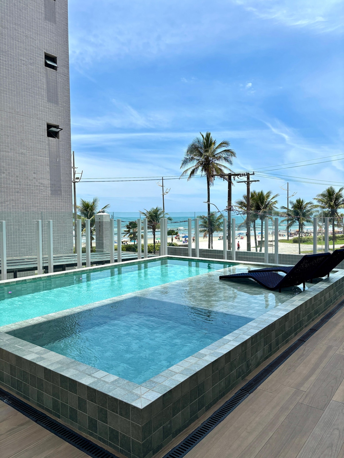 Apto frente mar, c/ piscina e churrasqueira Decoração temática p/uma experiência praiana. Acomodação nova, equipada com Ar cond. de 18.000 btus na sala e ventilador de teto nos quartos. Quartos com saída p/a sacada. Cozinha completa c/talheres, copos, pratos e panelas, além de filtro com água gelada, wifi, cafeteira nespresso, TV smart, sanduicheira, maq. de lavar, fechadura eletronica, além da bela vista da praia. 1 Vaga de garagem. Oferecemos roupa de cama e serviço de check in e check out
