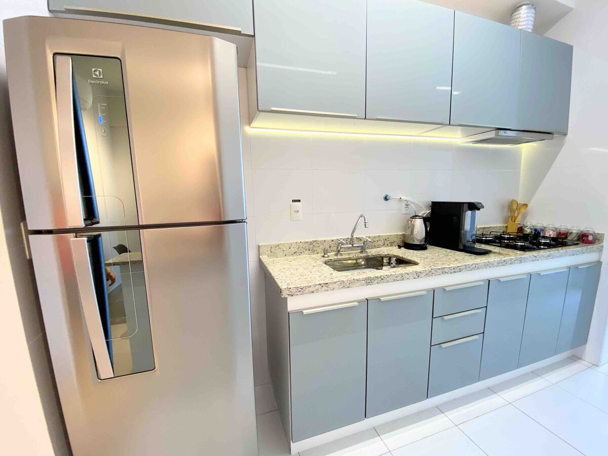 This 55m² apartment is ideal for couples and executives on business trips. It has everything you'd expect from an apartment: practicality and technology. For those coming to spend New Year's Eve in Santos, you can enjoy the festivities without even leaving the building. From the pool area, you can enjoy the sea view, the fireworks, and the city's festive atmosphere without having to deal with traffic, crowds, or a tiring commute after the fireworks.