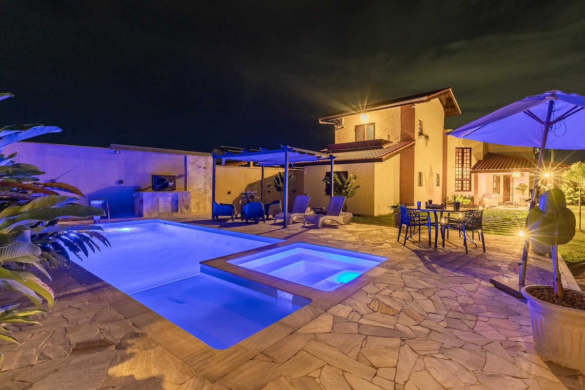☀️🏡🏖 Casa com Piscina para temporada, FDS, feriados, Natal e Ano Novo! Pra vc que busca uma casa com conforto e lazer para temporada, essa é a Casa do Bruno! Casa independente, privativa, ampla e uma enorme piscina 10x4x1,4 com cascata e hidro. Possui 2 dorm, 2 wc, sala, cozinha e varanda integrada a área gourmet , piscina e ducha praia. Com acomodação para 12 pessoas, dispõe de sistema de segurança monitorada, portão automático, Wi-Fi, TV Smart, e seu Pet é bem vindo 🐶🐯