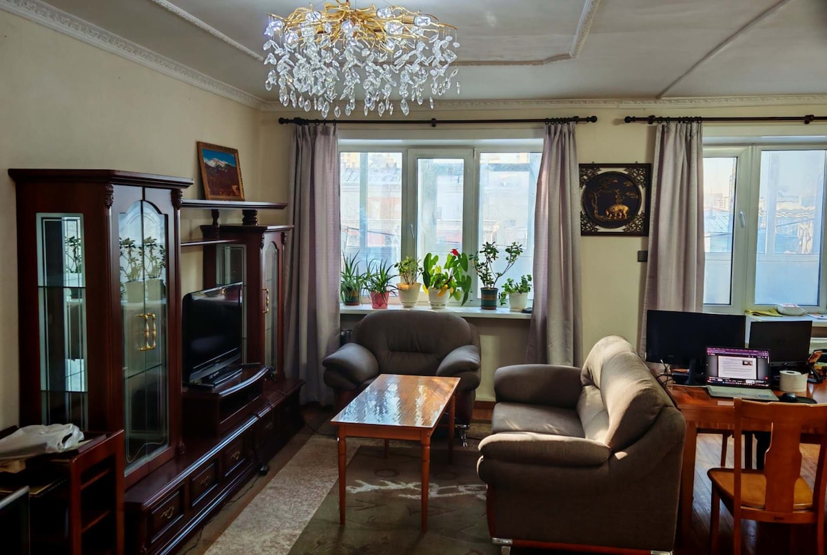 Stay in the heart of Ulaanbaatar in this cozy and spacious 3-bedroom apartment, just a short walk from the city's best restaurants, shops, and attractions. It's perfect for families or friends who want a comfortable and convenient home while exploring the city Other things to note: We are happy to provide extra services for Airport pick up/drop off as well as tour to Countryside, Terelj national park, horse riding tour-at extra cost)