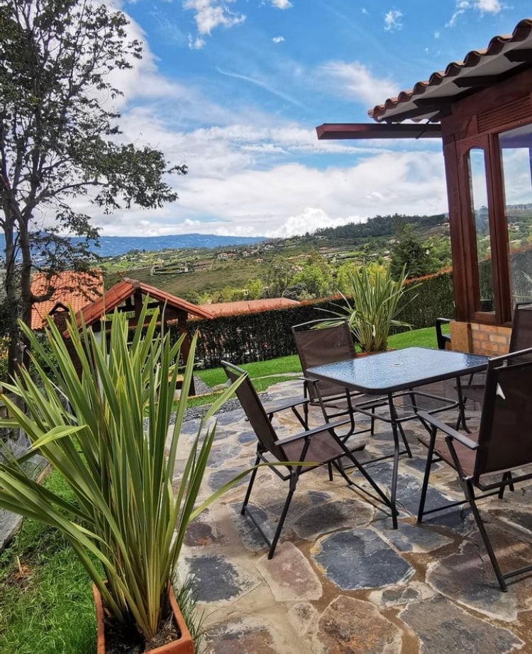 Hermosa cabaña en madera entre montañas en Tinjacá