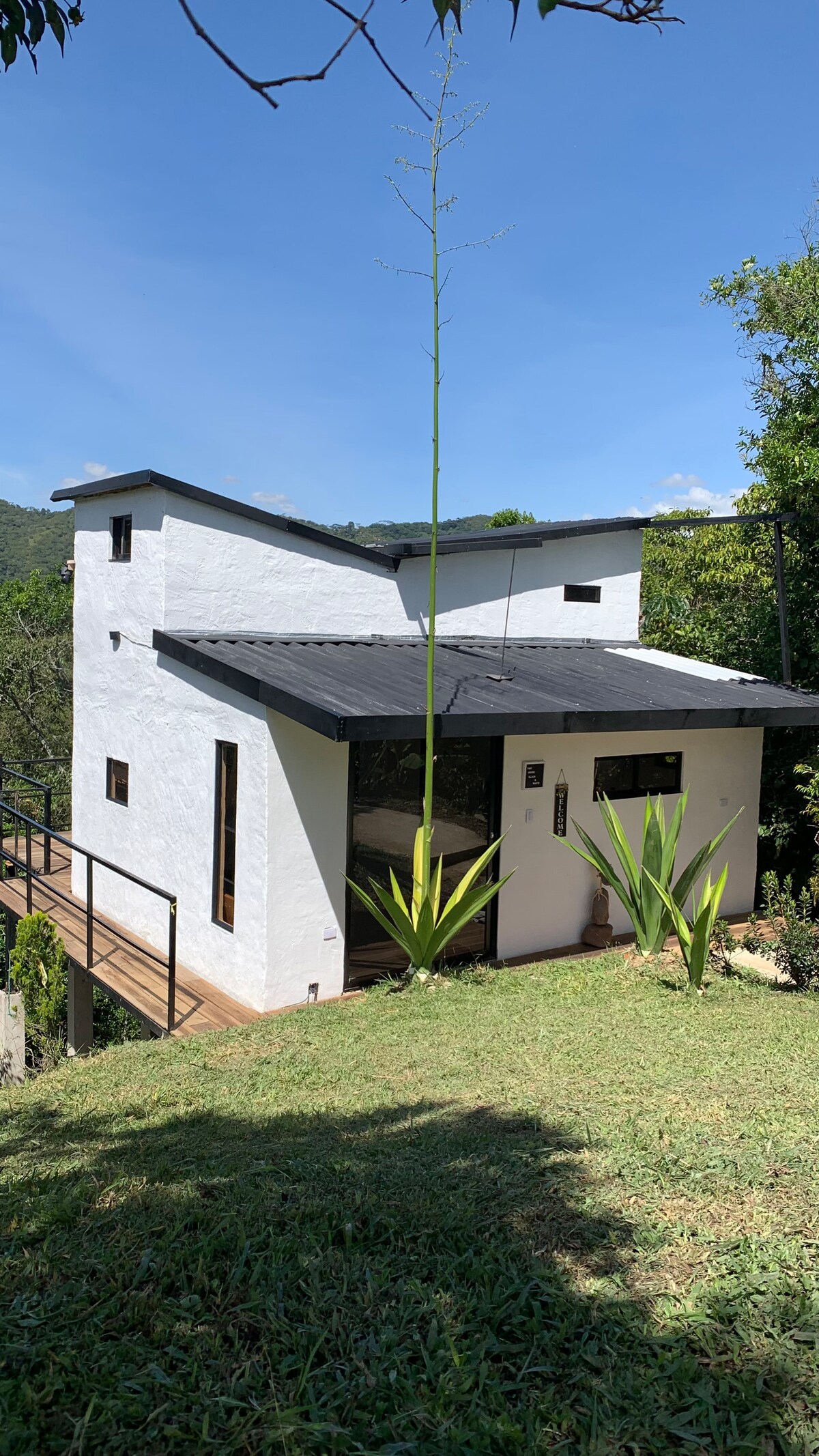 Tu familia o grupo, estará cerca de todo si te hospedas en este alojamiento céntrico. Tenemos la mejor panorámica al pueblo y estarás rodeado de vegetación aire puro y mucho espacio. podrás montar a caballo, jugar bolirana, minitejo, BBQ, wifi y puedes adicionar el servicio de jakuzzi. senderos tranquilos en medio de una finca donde pastan ganados y se cosechan frutales. Nuestra piscina de chorros es amplia con zonas de hamacas y playa de bronceo
