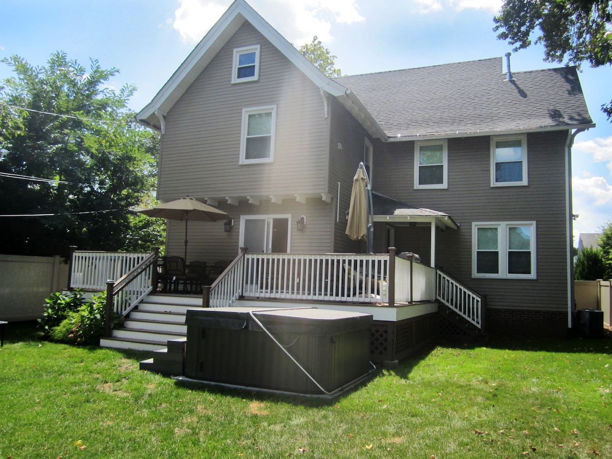 5-bedroom house w/ private patio and awning, 2 blocks from Manasquan beach near inlet with fishing/surfer beach. Very quiet neighborhood, access to county park on river bay at end of street. 1st floor completely renovated, balcony w/ lounge chairs. 4 rooms with beds, sleeping 8 people, one office room with couch, 3 full baths, unheated sun room with futon bed (additional bed sheets provided upon request, sleeps two more people). Hot tub.