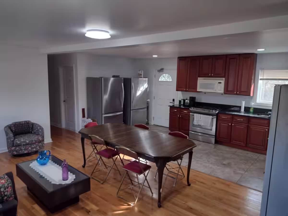 Welcome to our cozy, secure 2nd-floor apt with safe parking for 2 cars, private digital entry, and modern comforts. Features a comfy bed, private bath, work/dining space, large closet, kitchenette with stocked fridge, microwave, and coffee station. Ideal for both relaxation and productivity. Your perfect home away from home.