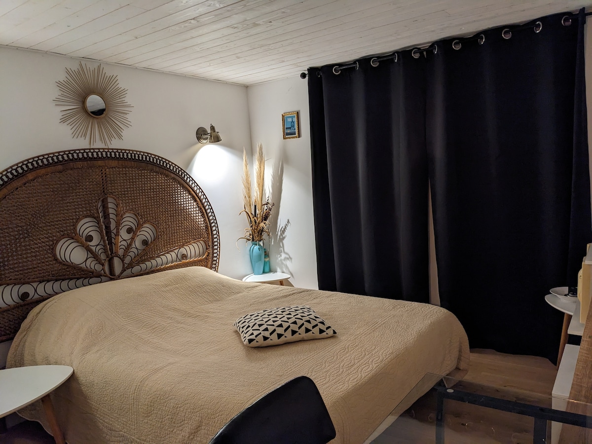Joli appartement de 45m2 entièrement aménagé en 2021 et redecoré en 2025. Situé dans le quartier sud de Vertou, en face des vignes et à 5mn du centre commercial Pôle Sud. Accès direct à des balades à pied depuis la maison. A 20mn en voiture du centre de Nantes. L’appartement est attenant à notre maison, avec une place de parking privative. Idéal pour travailler la semaine ou vos escapades du week-end ! Quartier calme, accessible uniquement en voiture.