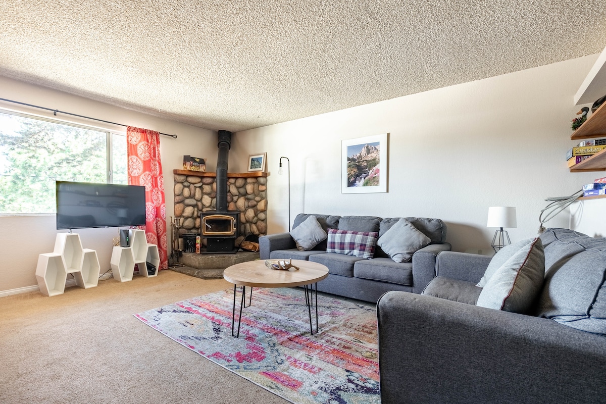 Our cozy condo is great for families with kids, couples OR just a group of friends on vacation together! Self check-in is contactless with a remote digital access code given at the time of booking. It is located 0.8 miles from the Village and only half a mile from Canyon Lodge; Tamarack Lodge is a short drive up Lake Mary Road. Access by car to several lakes for fishing, hiking, horseback riding, and mountain biking. Use the pellet stove to keep you warm during the cold days/nights.