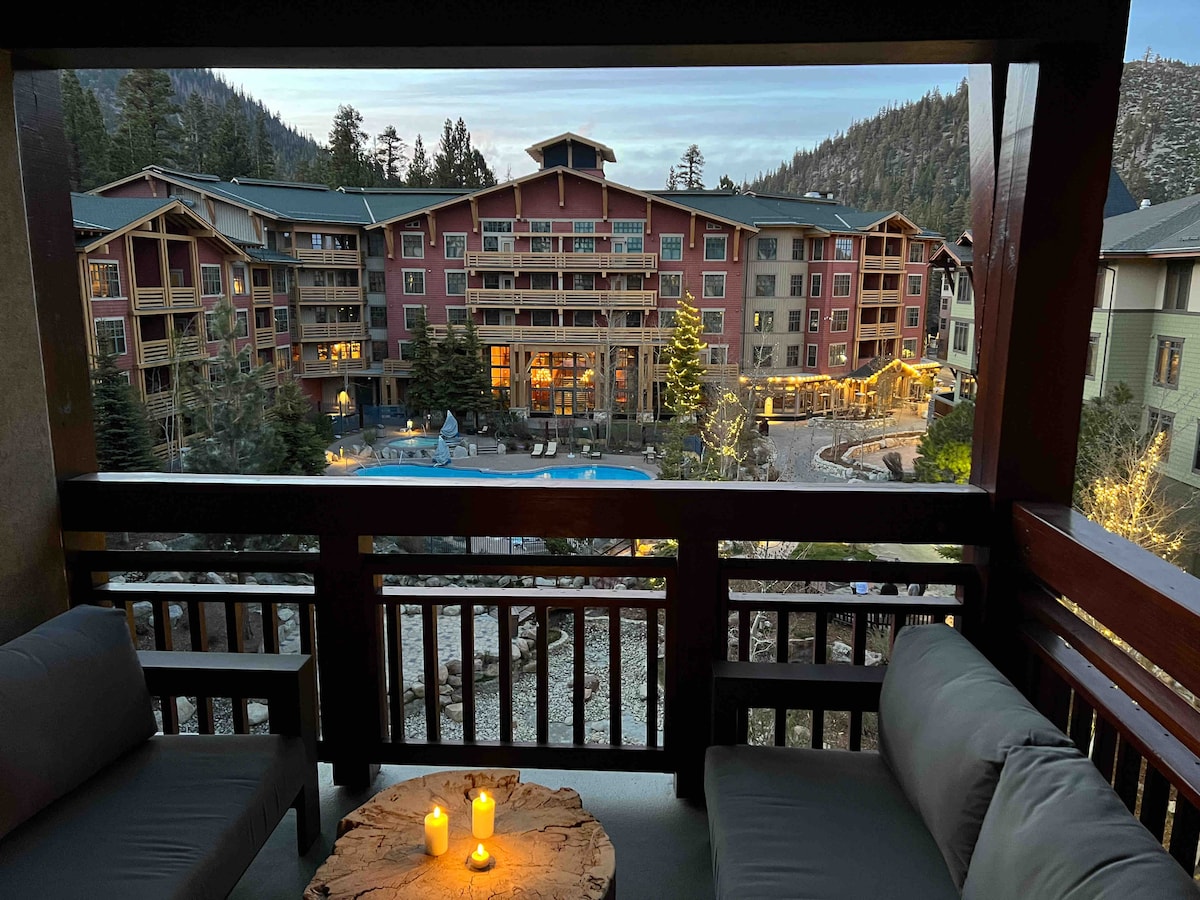 This unit is on the cool and quiet north side of "Grand Sierra Lodge" - the nicest and newest lodge in The Village at Mammoth Resort Hotel. This unit is 1 of just 4 oversized one-bedroom units in the Village! It faces Forest Trail, overlooking the main entrance to The Village, with a view of the mountains and ski-back trail bridge. Please note that this is actually in The Village at Mammoth Resort Hotel and is not across the street or a couple blocks away as many others are! TOML-CPAN-10523