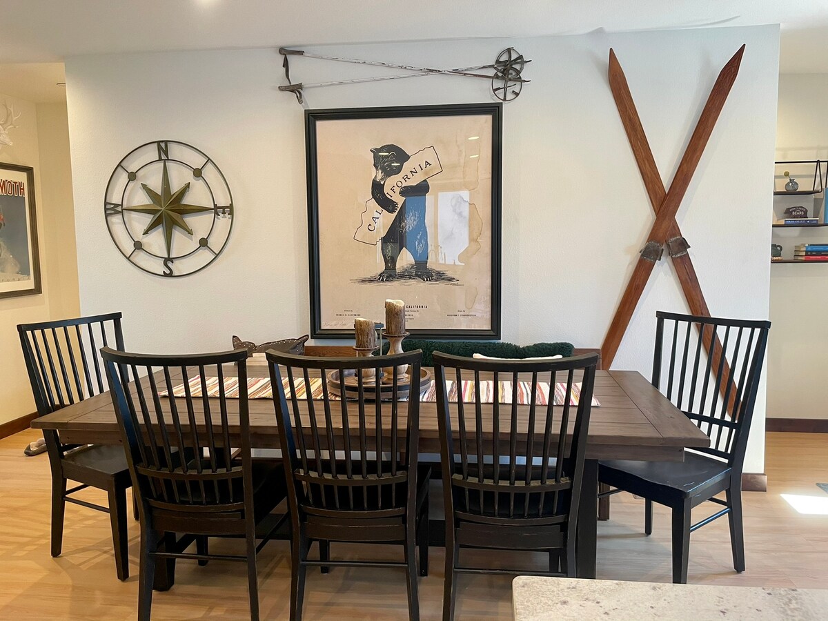 An updated ski-in ski-out condo with phenomenal views of the High Sierras. This 2 bed 2 bath condo is located at Sunstone Lodge just steps from the Eagle Express Chair lift for easy access on and off the mountain. This condo can sleep up to six guests with a king bed in the master bedroom, two twin beds in the guest bedroom, and a pull-out memory foam mattress in the living room. Cozy up next to the fireplace after a day of skiing to watch a movie on the living room's 65 inch 4K Smart TV.