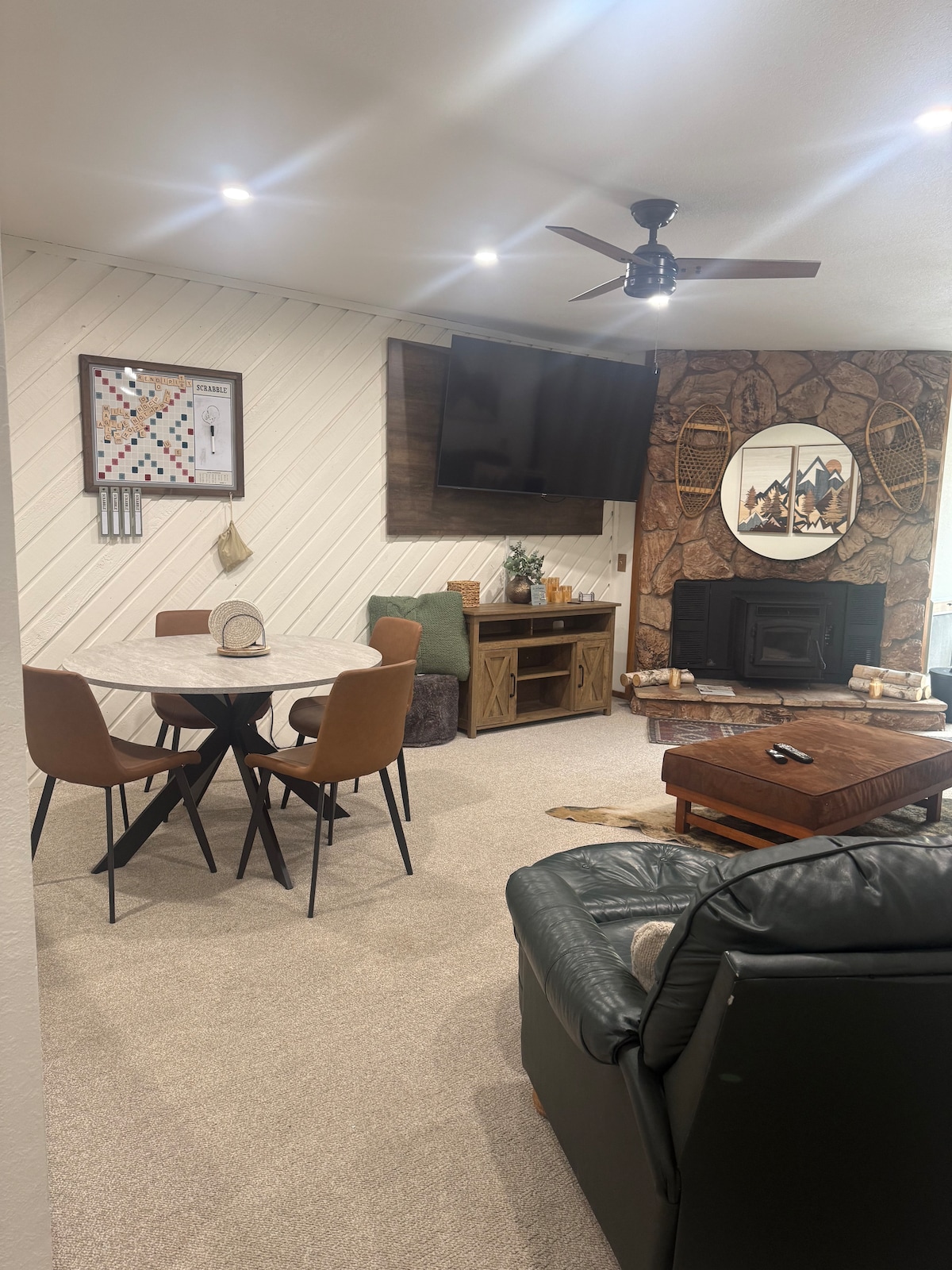 Powderhaus is a beautifully remodeled two bedroom, two bath condo with a bonus loft and two-car private garage with EV charger, located next to Canyon Lodge. With stylish decor and high-end furniture and beds, this mountain gem is outfitted with everything you need for your mountain getaway. You'll enjoy a spacious and open floor plan, perfect for entertaining family and friends after a day on the slopes, hiking, or the other adventures Mammoth has to offer. Private 2-car garage. TOT#8113-0002
