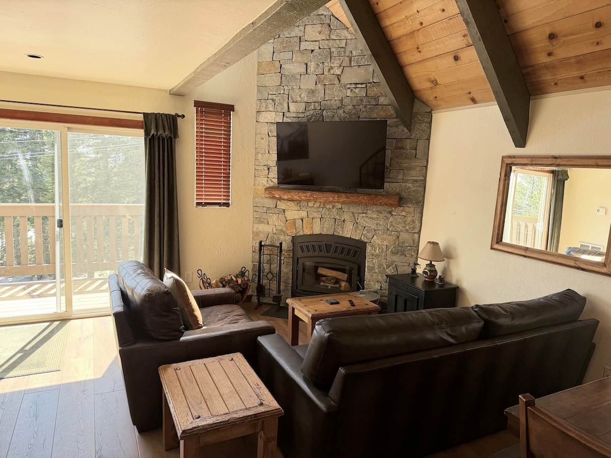 Relax with the whole family at this peaceful place to stay. Remodeled 2 bedroom +Loft home with a park like setting in Snowcreek II. Many upgrades! New floor to ceiling stacked stone fireplace with an energy efficient pellet stove. Kitchen has all new appliances, counter tops, cabinets and custom tile throughout. Loft is enclosed on one side for more privacy. Completely remodeled bathrooms with new vanities and beautifully tiled showers.