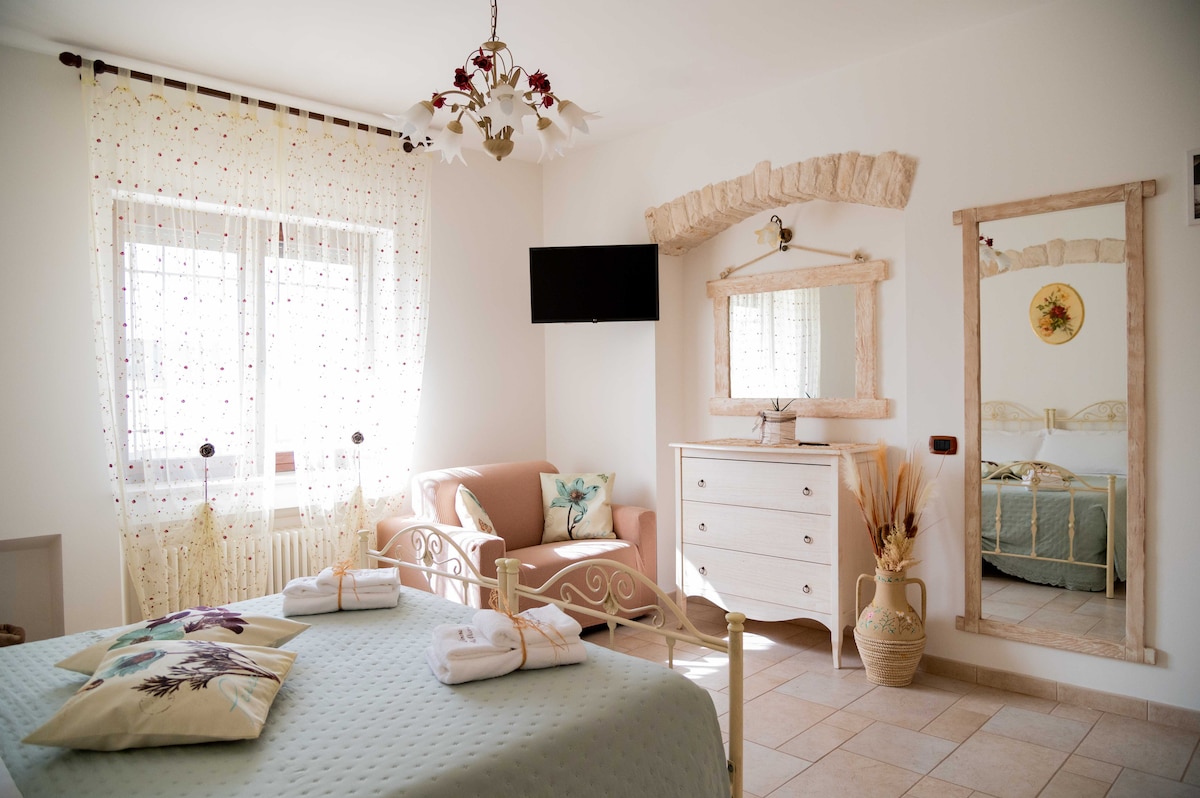 Situato nel pieno centro storico di Locorotondo, Ughetto, è una deliziosa suite: la zona giorno è fornita di ripostiglio, angolo cottura, tavolo da pranzo, frigorifero e TV. Un'alcova adornata di un antico arco in pietra accoglie il divano letto di supplemento alla zona notte situata nella parte est e fornita di letto matrimoniale, stand appendiabiti e TV. Il bagno è dotato di ogni comfort. L'intero appartamento è provvisto di riscaldamento, aria condizionata e wifi gratuito.
