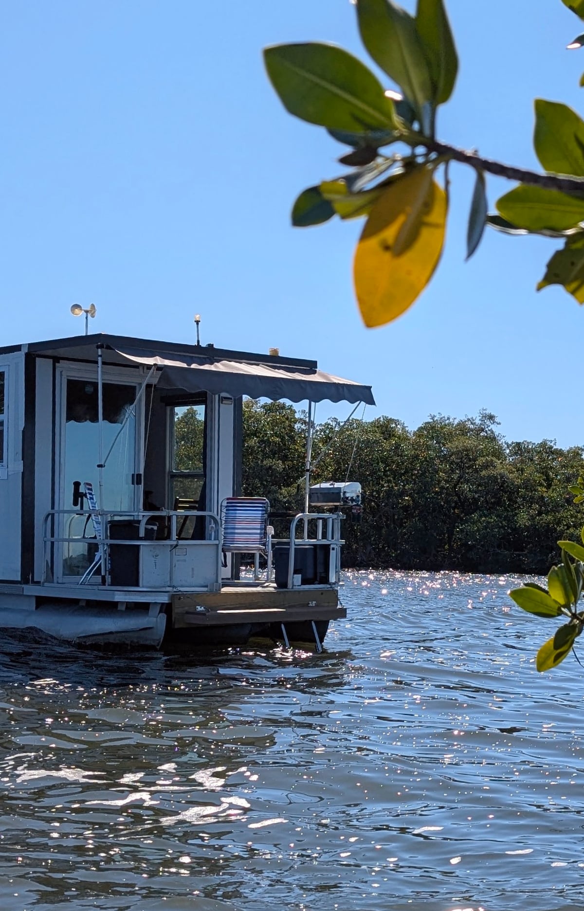 IMPORTANT Enjoy your own private retreat aboard a solar and wind powered houseboat moored 1/2 mile from land in the beautiful Islamorada Please do not arrive after dark and NO night riding. Need experience with hand pull outboard motors a 12 foot skiff with a 6hp outboard motor is provided reliable to go back and forth from shore NOT reliable for exploring No hot water on shower, heat water in Tpots or Solar bags. Please shave before arriving No suitcases, least amount of cloths.
