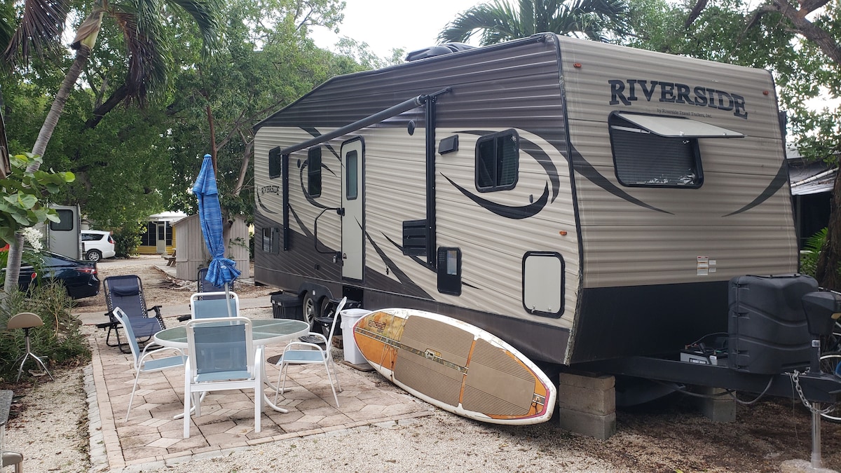 The ultimate escape from the mainland to relax and reload while enjoying the comforts of home. Enjoy the sun and sea and at night relax at your new 35ft fifth wheel with all the amenities of home. Two bedrooms and two baths with a full modern kitchen. Reclining chairs and HD tv's. Great WIFI to stream your favorite shows or game. Great central air conditioning and modern appliances. BBQ grills on grounds and a beautiful beach for nightly sunsets.