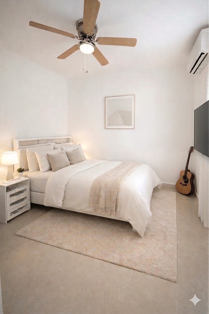 Un apartamento pequeño pero cómodo y completo de 2 habitaciones y 1 baño , tiene 2 camas queen y 2 sofá camas 1 grande y uno pequeño para máximo 6 personas , incluye todos los utensilios básicos como un hotel , queda a menos de 10 min del aeropuerto y 20 min de la playa y tiene donde parquear el carro adentro del terreno enfrente de la casa , es un apartamento muy central hay diferentes restaurantes , bomba de gasolina , supermercado , farmacias a solo 5 min caminando y es muy seguro .
