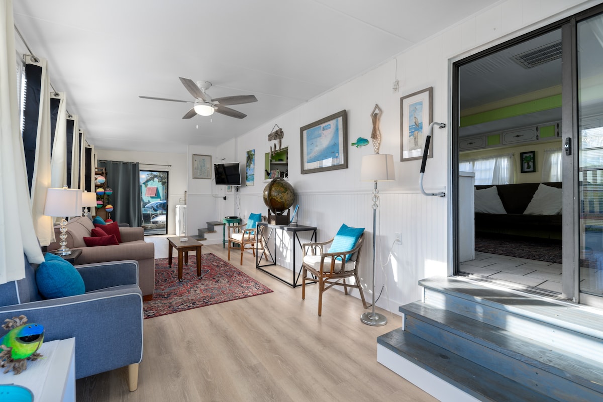 Charming "Tiny House" Cottage on a main canal just two units from open water. Amazing location for boaters, fisherman and alike. This is a quaint and close knit RV park where you can keep to yourself or wander around and enjoy happy hour with new local friends. Bar none the best kayak, paddle board and fishing area. Two Tandem (each kayak accommodates two people) Kayaks and two paddle boards included in rental. Great outdoor space to dock your boat, fish off of or enjoy a few cocktails!