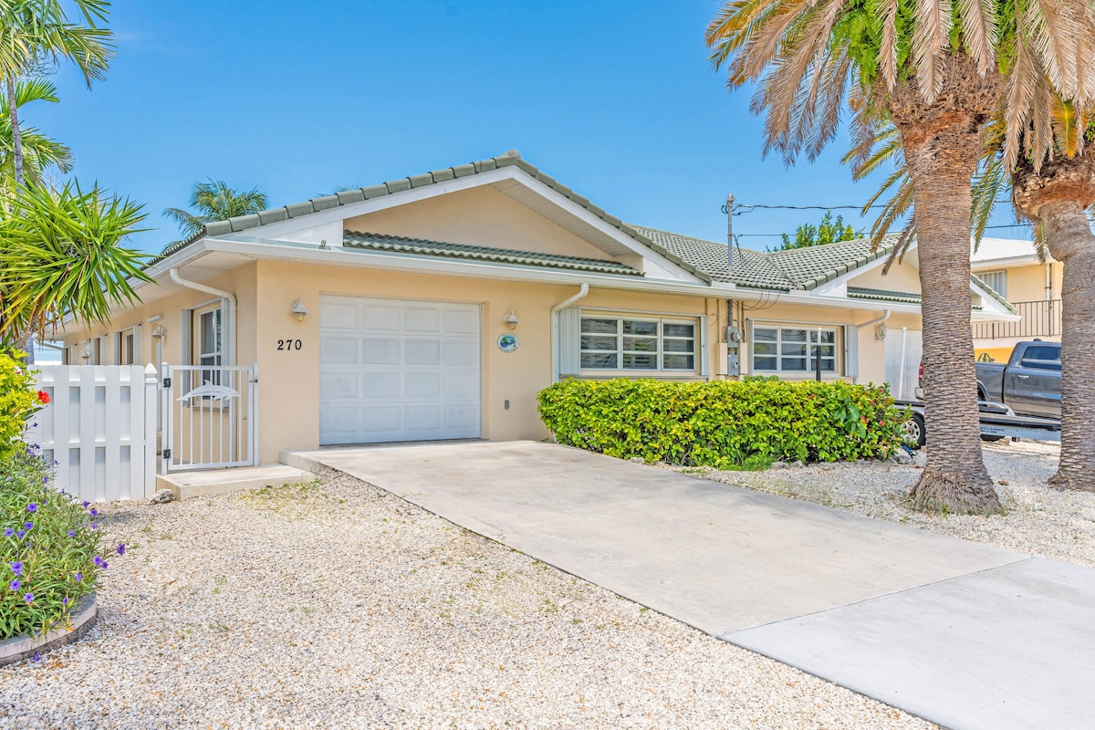 3BR/ 2 BA stilt home on crystal clear canal with open water views on deep water with 30 foot boat slip on a cul de sac. Short walking distance to multiple restaurants/bars, shops, and the Cabana Club with beach, pool, and hot tub. Fenced in waterfront patio with tiki hut. Kid friendly, with toys and high chair. Covered parking. Guests required to sign Regulations for Key Colony Beach form.