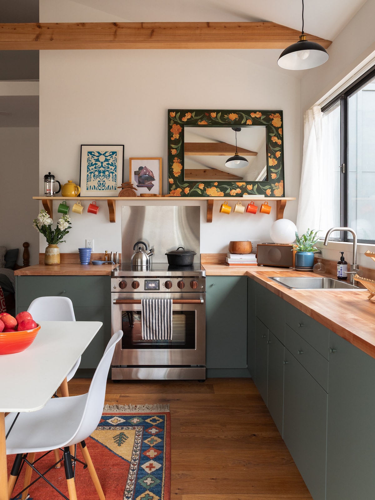 This little granny flat is an inspiring, light-filled space with all of the basics, located in a friendly neighborhood, and literally steps away from the host house. With one bed (an American Leather pullout coach in a full queen size) and a full bathroom with shower upstairs, and kitchenette and living space downstairs, you'll have everything you need for a comfortable stay. We are located a few blocks from a coffee shop, and an easy one mile walk from downtown Bloomington. All are welcome!