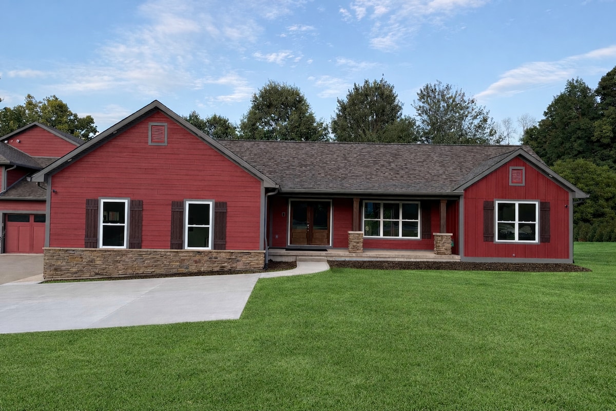 LUXURY FAMILY RUSTIC DESIGN 2 blocks from the IU Football stadium. Walk and Save hundreds on game day parking fees. Perfect for visiting with your IU student child . Rustic decor with cathedral ceilings. Master suite has huge walk-in shower with 2 seats and 2 shower heads. Wonderful massage chair to relax those aches and pains! Fun family lodging with YoutubeTV, darts, foosball, knock hockey. 30 years old min age to book. 3 Large screen TVs and 3 fireplaces(one in each bedroom).