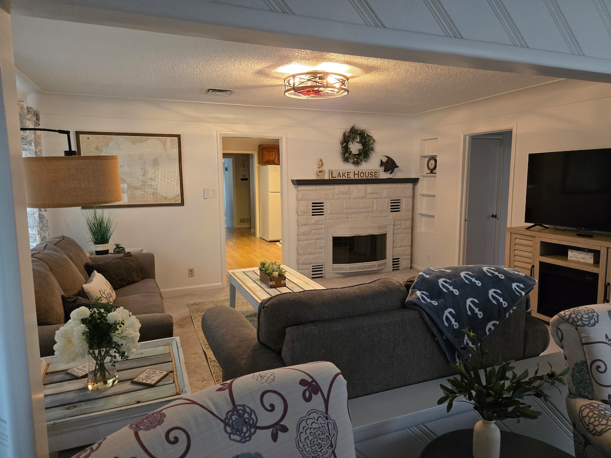 Welcome to your private lakefront escape - a beautifully designed 4~bedroom home and one of the most booked lakefront stays in the area, made for relaxing, reconnecting, and making memories. Wake up to peaceful water views, enjoy coffee at our fully stocked coffee bar, and spend your days swimming, soaking in the hot tub, or relaxing on the deck overlooking the lake. Inside is an open concept living space. Perfect for families.