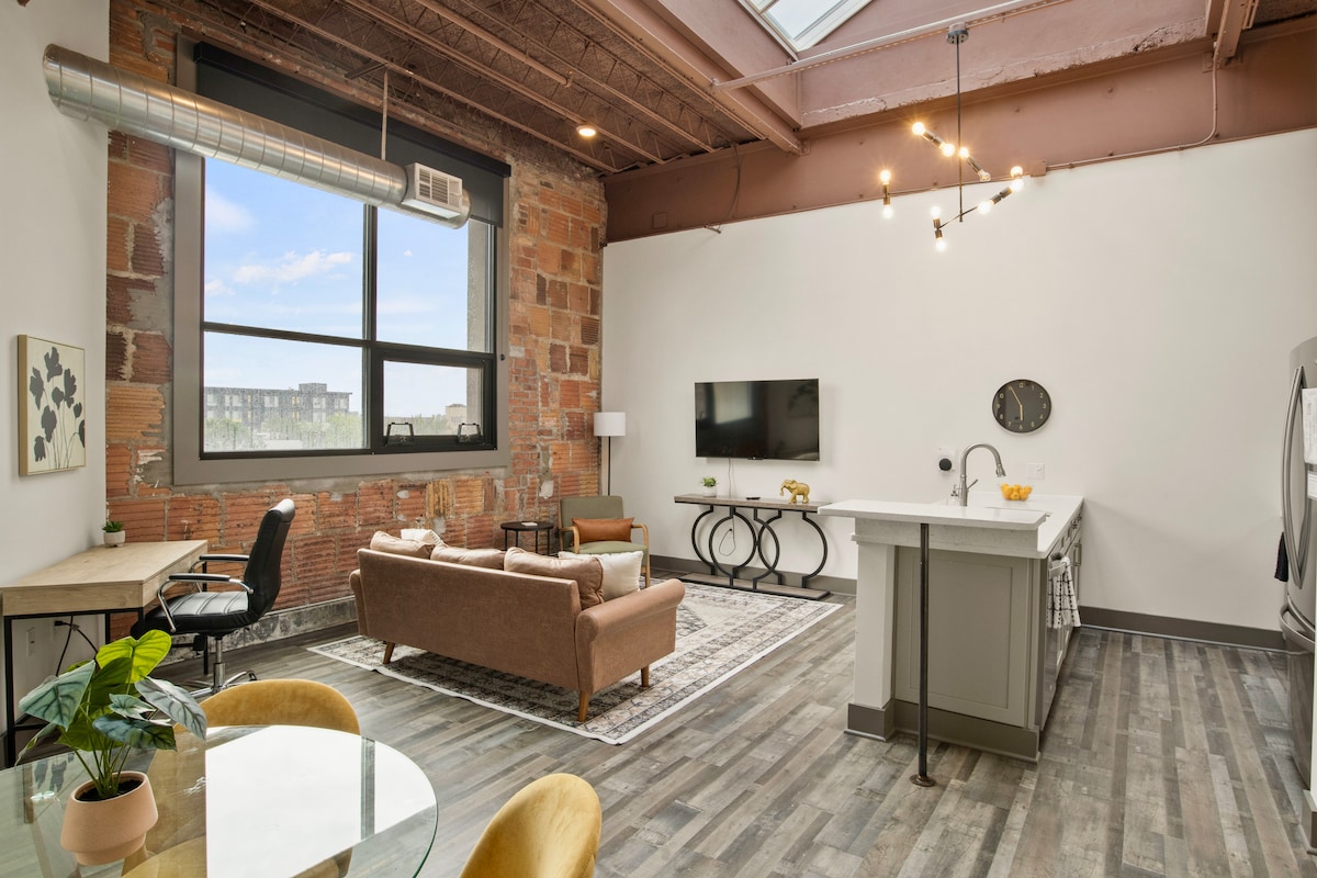 Stay in this historic Button Factory to experience the best food, business and entertainment in Rochester. From high-end finishes to modern amenities, this loft is the pinnacle of perfection. Here at Lofted Living, we strive for a seamless experience for you, including a dead simple check-in process and periodic check-ins during your stay. With 24/7 availability we will assist you with anything from restaurant suggestions to providing additional towels. Sit back and enjoy your stay!