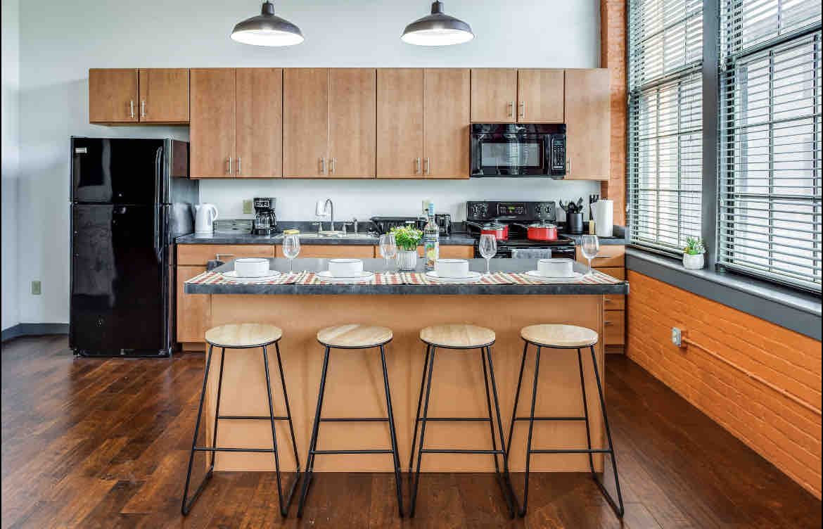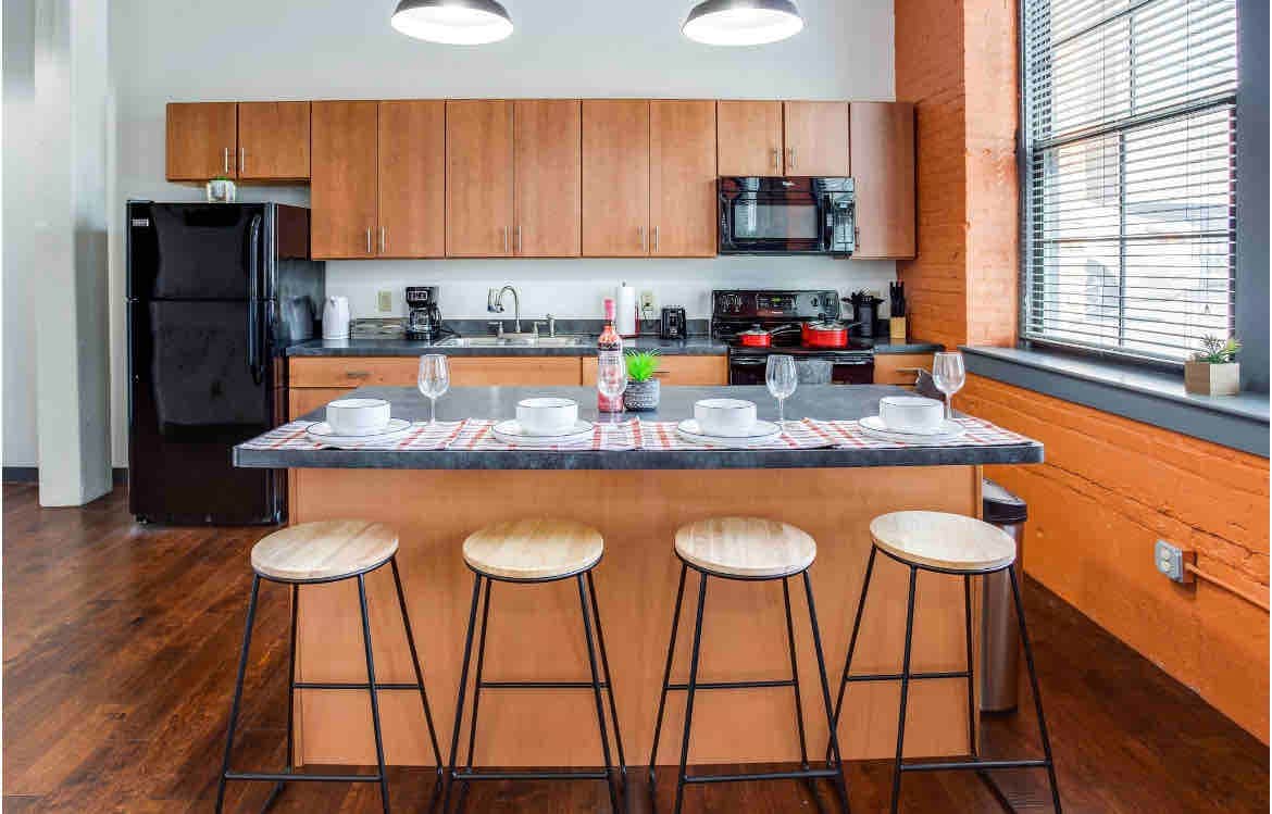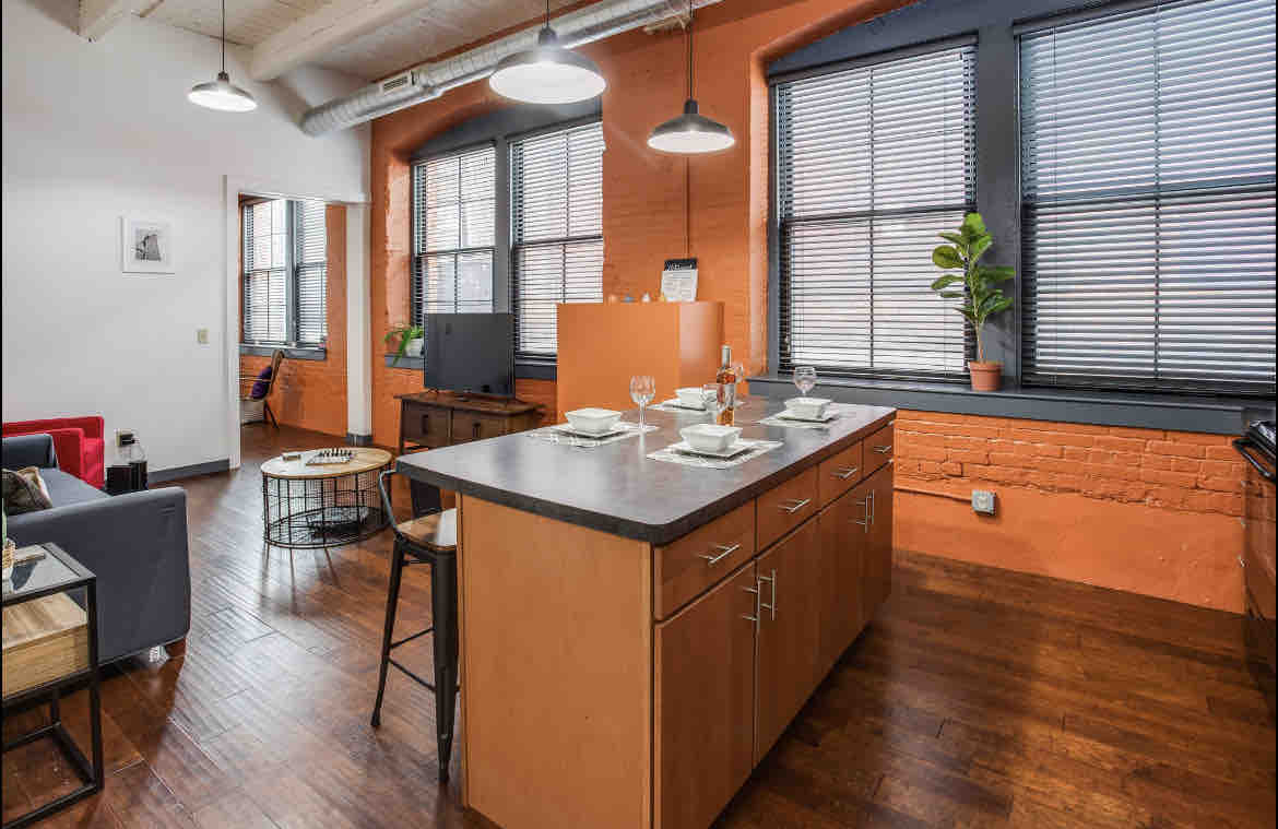 Stay in this historic Button Factory to experience the best food, business and entertainment in Rochester. From high-end finishes to modern amenities, this loft is the pinnacle of perfection. Here at Lofted Living, we strive for a seamless experience for you, including a dead simple check-in process and periodic check-ins during your stay. With 24/7 availability we will assist you with anything from restaurant suggestions to providing additional towels. Sit back and enjoy your stay!
