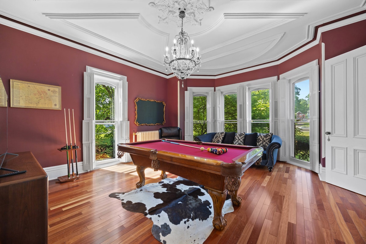 Treat yourself to this National Historic Landmark situated on 3 acres in the heart of Penfield NY located just 8 miles from downtown Rochester in a safe suburban location. Be our guest at this unique family friendly home perfect for gatherings and making memories. The George Southworth House, affectionately known as the “Strawberry Castle” was built in 1875 and boasts 4 bedrooms and 4 baths. Admire the beauty and craftsmanship of days gone by while enjoying the modern comforts of today