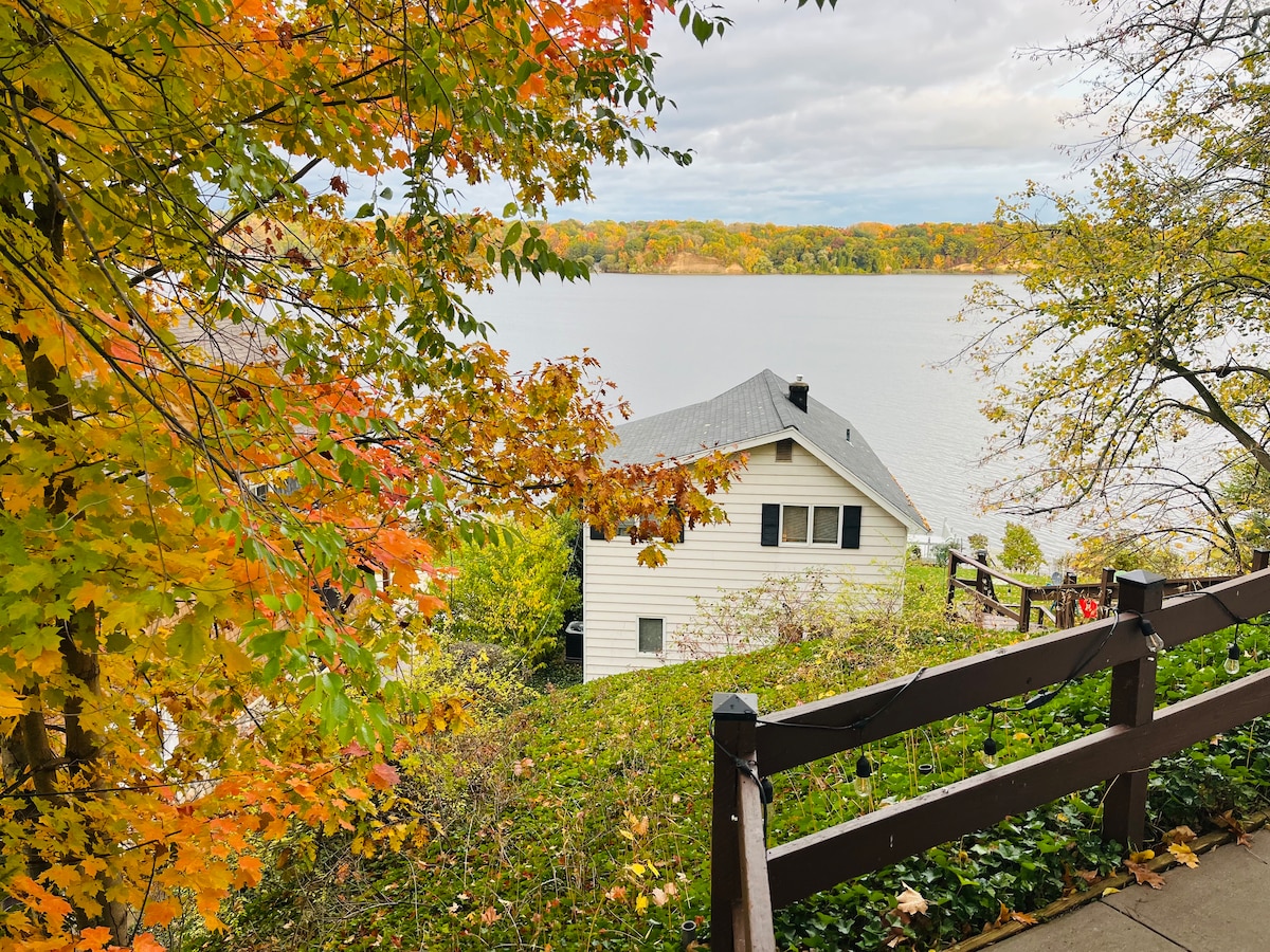 Please read the entire listing. 🏡 Main house sleeps 6 and for an extra fee 💵 of $100/night the detached bunkhouse that sleeps 4 can be reserved. 🛏️ Relax at this peaceful bay front property! 🏝️The main house is 40 steps down a staircase from street level with 2 decks overlooking Irondequoit Bay. Main house first floor includes a large kitchen, living room with dining space and a full bathroom. Upstairs, a spacious primary bedroom with full bathroom, and 2 additional bedrooms