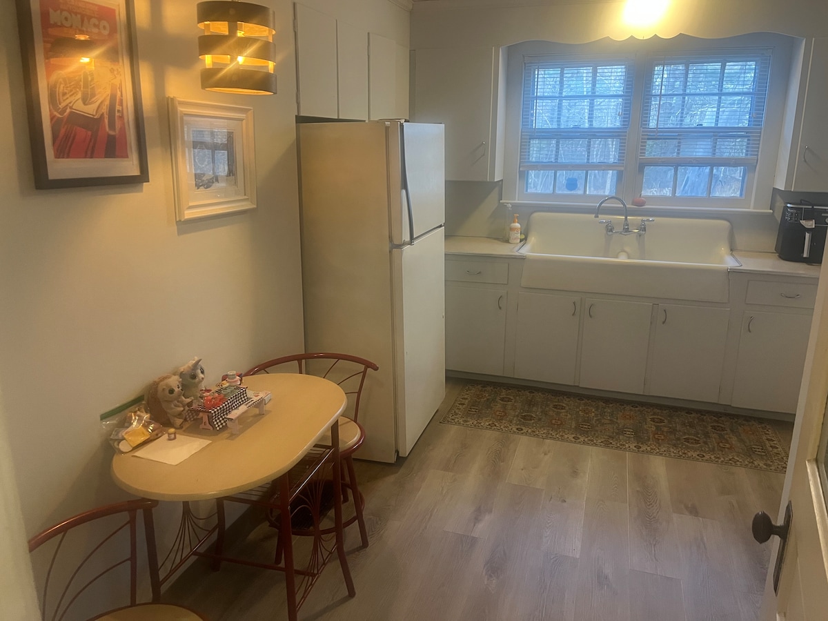 Apartment with private entrance in lower level of our home. Two large rooms and bathroom. Queen Bed and large sectional couch that can sleep 2 comfortably. Kitchenette with microwave, coffee maker, induction burner, large toaster oven and refrigerator. Breakfast cereal, granola, oatmeal, milk and fresh eggs are provided as well as coffee, tea, hot chocolate and popcorn. 90’s nostalgia family room with pool table, air hockey table, TV with lots of dvds, & VHS, boardgames, toys and books.