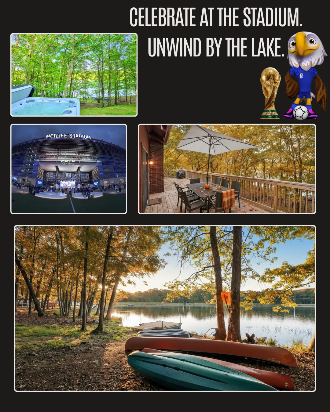 Olibear is your lakeside Poconos getaway for skiing, hiking, and year-round entertainment. Enjoy the hot tub, fire pit, and indoor heated pool (All-year indoor community heated pool hours: Tue, Wed, Thurs, Sat & Sun: 12–4 pm). Minutes from Bushkill Falls and close to major routes for easy access to mountain resorts. Also, a convenient home base for travelers heading to the 2026 World Cup matches in NY/NJ and Philadelphia next summer. Book you Pocons getaway Today!