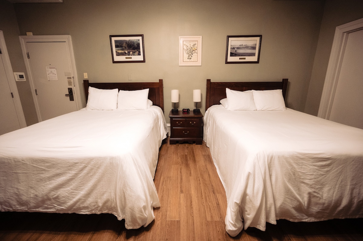 Two exclusive Swiftwater Queen mattresses with Frette luxury bed linen, 65" Smart TV, double vanities, high-pressure shower, plush robes and slippers, built in USB and USB C outlets, complimentary high speed wired and wireless Wi-Fi, touch pad room controls, desk, mini bar/fridge, in room safe, steamer, hair dryer, shower amenities, coffee station. Daily housekeeping and Swiftwater’s Signature Service. Approximately 350-375 square feet.