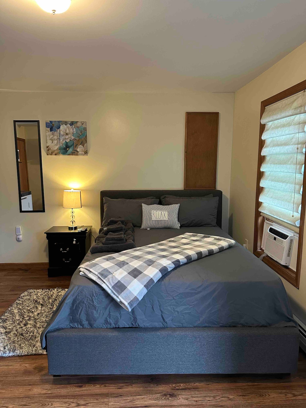 Welcome! This warm, cozy light-filled unit awaits. This unit has its own private entrance, which leads to a light and spacious living room with vaulted ceilings & skylight windows. Unit includes a laundry room, full sized kitchen & bath. 1-BR W/ queen sized bed. You can’t go wrong with this unit. Beautiful sunrises and sunsets, minutes from the Delaware Water Gap with miles of trails. Close to the Pocono Mountains. Come stay and relax in this tranquil unit that will make you feel right at home.