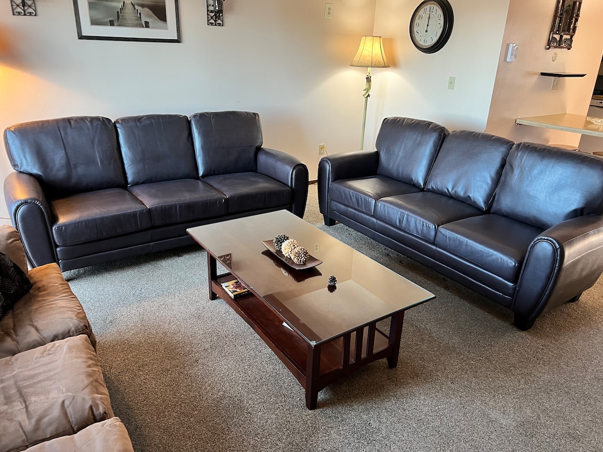 Ski slopes open on December 15! Bring the whole family and friends to our stylish, cozy unit, just a walk away from ski slopes, water parks, indoor pool, tennis courts, sauna, hot tub, and more. Enjoy the local villages, with the nearby hiking trails, waterfalls and breathtaking scenery, nearby casino. Indoors you have cozy living area with a wood fireplace, 3 large screen smart TVs, super fast WiFi. Get comfortable with central AC for hot weather days and a fully equipped kitchen for cooking.
