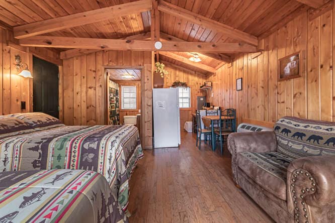 One of the earths truly unique places! Enjoy an experience with the ultra clear blue water of the quarry with fish, high rock cliffs, a raft, and a pedal boat. The cabin is a true log home built for guests to love. Relax on the covered porch with hot tub, rocking chairs, and amazing water views. Entertain yourselves with the arcade, satellite TV, WiFi, Rokus, and backyard games. Fire pit and park style grill are also in the backyard. Fire wood and coffee are provided. Pet friendly. Enjoy!