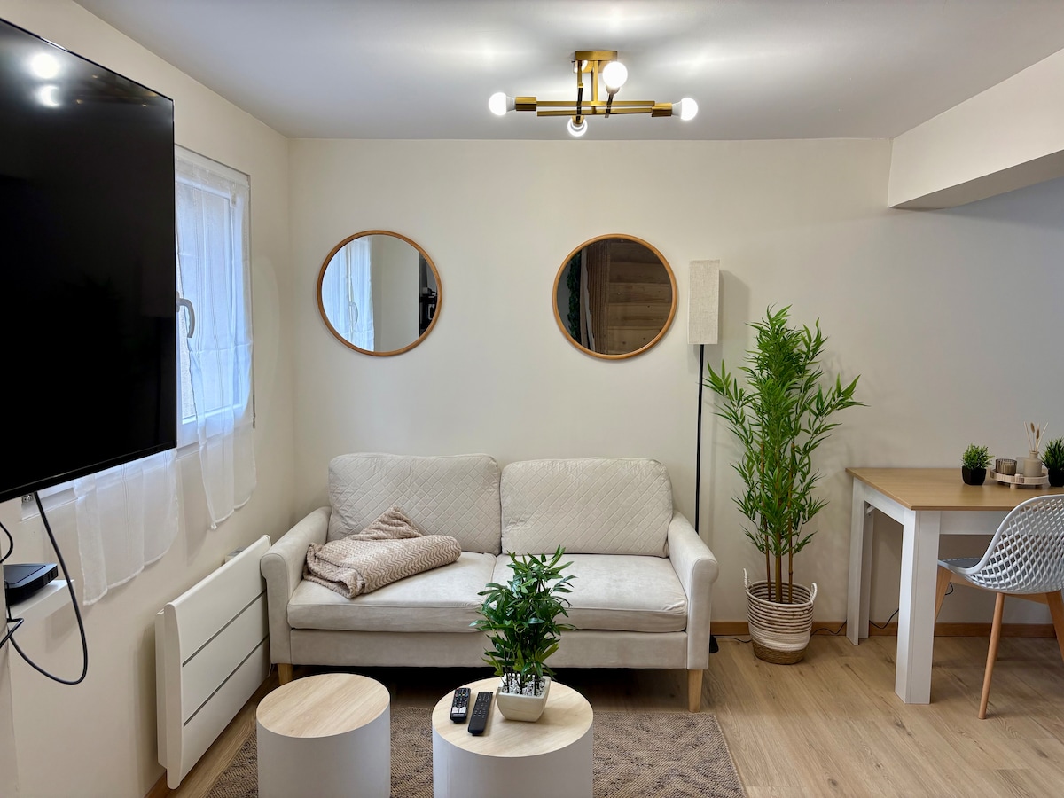 Détendez-vous dans ce logement calme et décoré avec soin. Un petit havre de paix pour profiter d’un moment agréable à deux ou en famille. Un salon cosy avec canapé convertible, une grande chambre, une cuisine équipée, une salle de bain avec douche à l’italienne, une laverie et surtout une deuxième salle à l’étage avec une sublime baignoire balnéo de deux personnes avec jets et système hydro massant pour un moment relaxant.