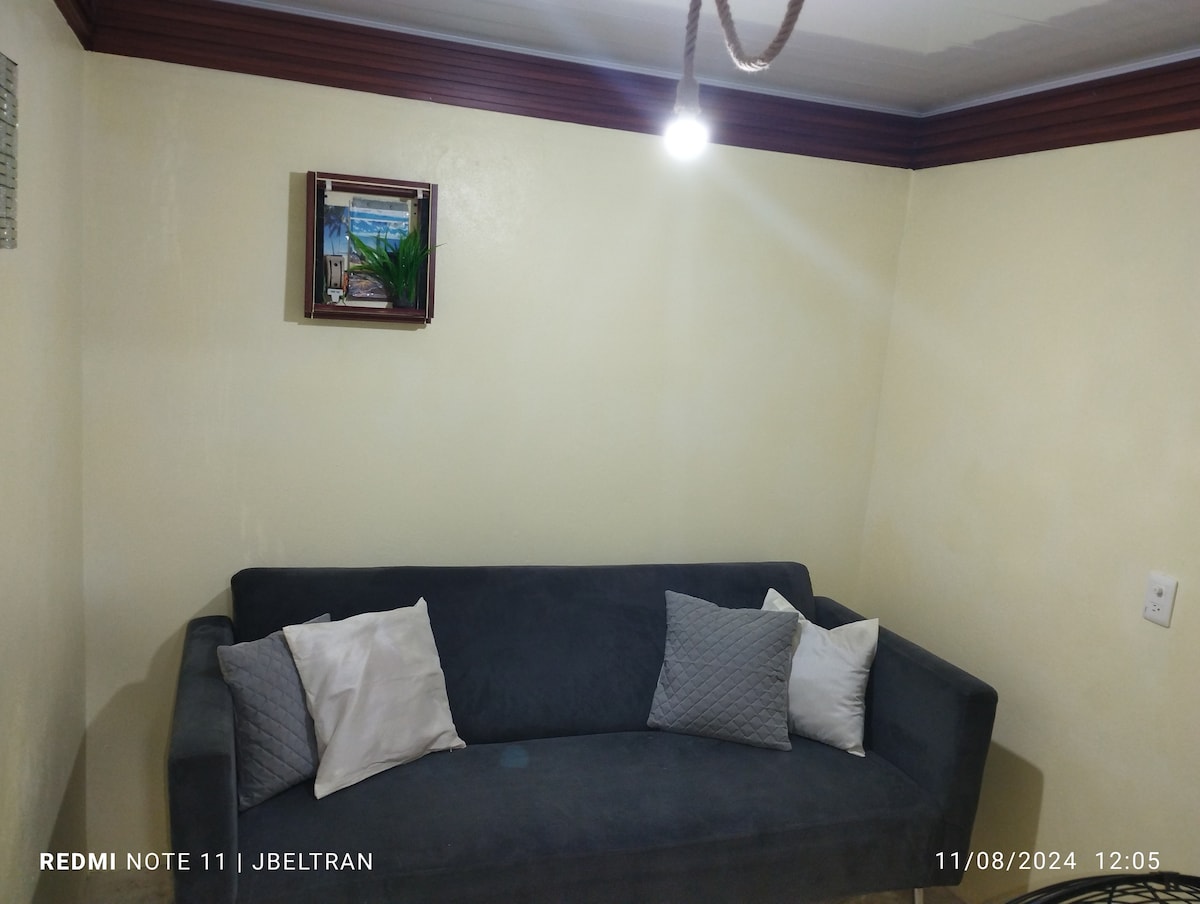 Es una casa con un ambiente tranquilo y relajado tiene tiene verja para seguridad de los Uesped , bien iluminanda puertas y ventanas seguras Camara de vigilancia en la parte de frente y de atrás de la casa