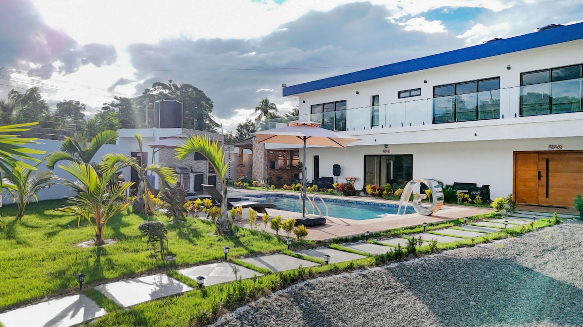 A 10 minutos del río Cachamba, a 15 minutos de la montaña de Blanco, a 20 minutos del rio Fula, a 10 minutos del Centro de la Ciudad, a 8 del Típico Bonao, a 8 minutos de la Sirena. Disfruta de la elegancia contemporánea en nuestra villa de 5 habitaciones con diseño arquitectónico moderno. Sumérgete en la piscina privada, organiza asados en la barbacoa y relájate en un entorno de lujo. Una escapada perfecta para grupos grandes y amantes del estilo contemporáneo.
