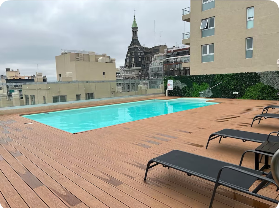 Ubicado en pleno casco histórico de BA, cerca de los puntos turìsticos mas importantes de la Ciudad. Casa Rosada , San Telmo , Puerto madero, Cafe Tortoni, Cafe La Ideal, Obelisco y muchos otros. Cercano a todos los medios de transporte publico y rodeado de restaurantes, supermercados y Farmacias Cuenta con Piscina climatizada, Espacio Co work, Laundry y una terraza con vistas a la ciudad. El edificio tiene seguridad las 24 horas, wifi y todos los servicios para que tu estadia sea perfecta