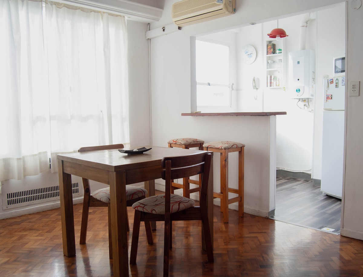 Este estudio luminoso y acogedor te permitirá disfrutar de tu estadía en el corazón de Buenos Aires. En una zona céntrica y cercana a la Avenida corrientes, tienes fácil acceso a locales gastronómicos, todos los teatros incluido el majestuoso Teatro Colón y a sólo 10 minutos de caminata el obelisco de Buenos Aires. Su excelente ubicación te permite moverte por la ciudad con facilidad, a 300mts la estación de subte Sáenz Peña (línea A) y a 500mts de la estación Uruguay (línea B del metro).
