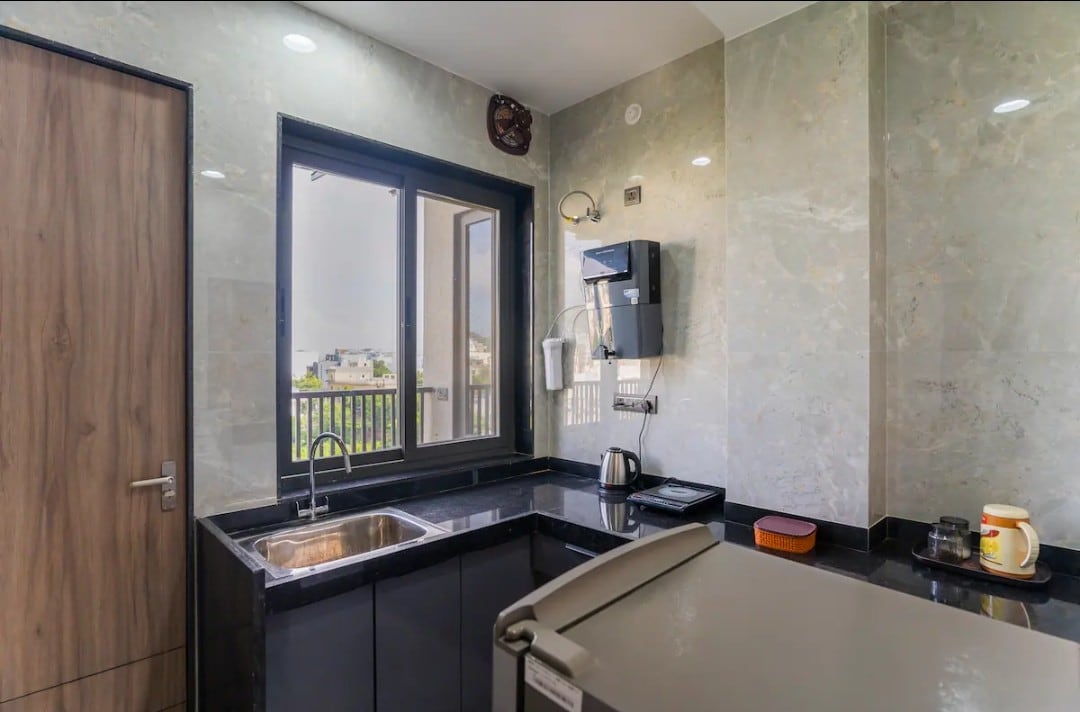 Bring the whole friends & family to this great place with lots of room for fun - All large rooms equipped with 55” inch TV. - Spacious, clean and beautifully furnished interiors - One Room with private Swimming Pool of 225 sqft - Fast Wi-Fi & Smart TV - Fully equipped kitchen-All essentials - 24/7 hot water & air conditioning - Private balcony - 2 car parking - Bathroom essentials- Biotique - EV charge ₹ 1200 Perfect for Couples & families looking for a stylish, peaceful, & well-connected stay
