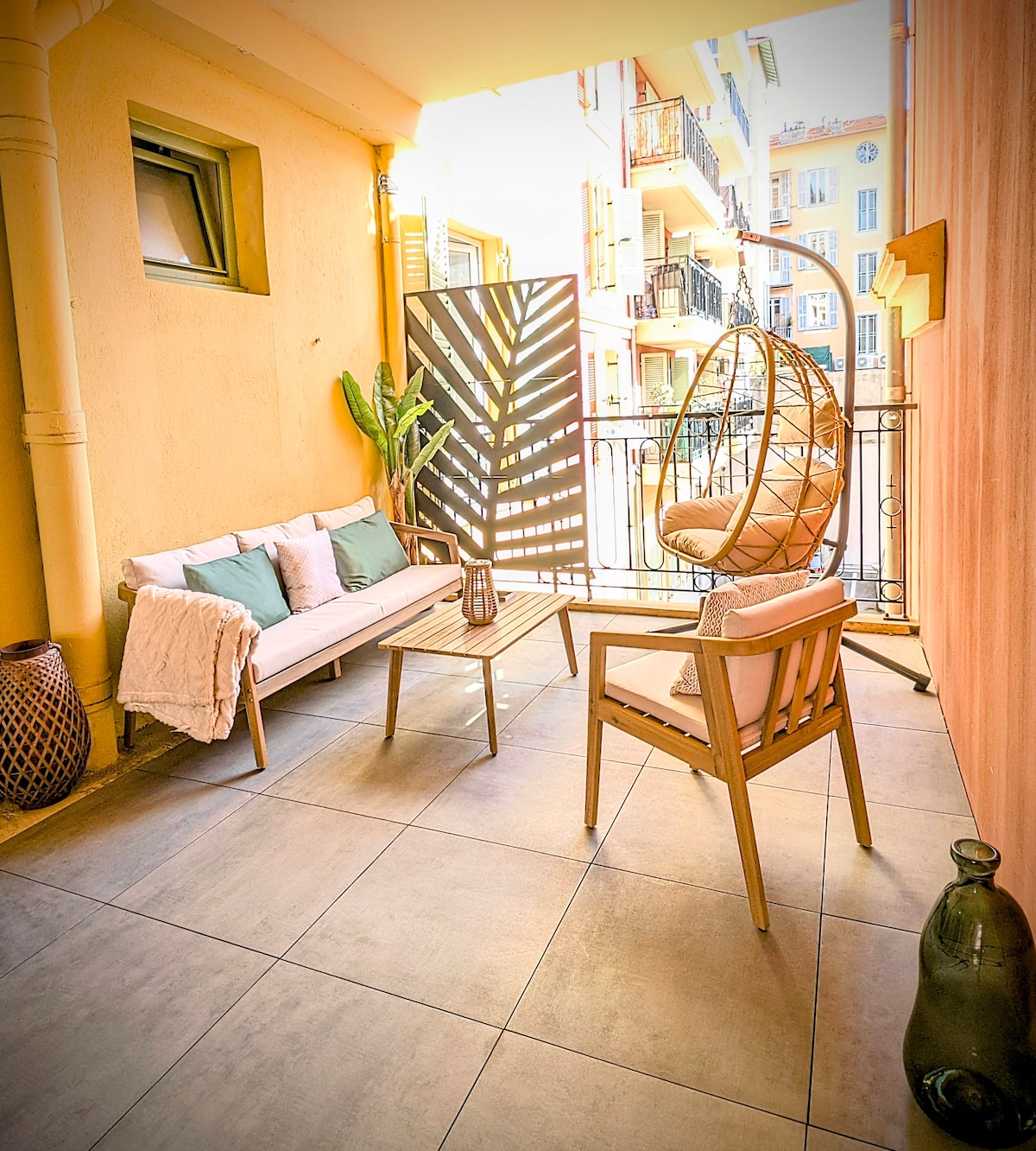 Das außergewöhnliche Apartment befindet sich im 4. Stock eines Mehrfamilienhauses an der Promenade des Anglais, d.h. nur wenige Schritte vom Strand entfernt. Die Wohnung verfügt über ein großes Wohn-/Esszimmer mit einer offenen Küche sowie 2 Schlafzimmer, 2 Bäder und eine große Terrasse. Die Einrichtung ist stilvoll-lässig. Der großzügige Balkon ist auf das Meer ausgerichtet und hat (fast) den ganzen Tag Sonne. Zum Stadtzentrum sind es 15 Minuten zu Fuß oder 5 Minuten mit der Straßenbahn.